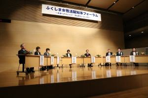 各出演者から女性活躍に関する活動状況、活動している中での課題と課題解決に向けた提案をお話しいただき、知事からは、福島県の復興と男女ともに活躍できる福島県の実現に向けて、先頭に立って県一丸となって取り組んでいくと発言がありました。