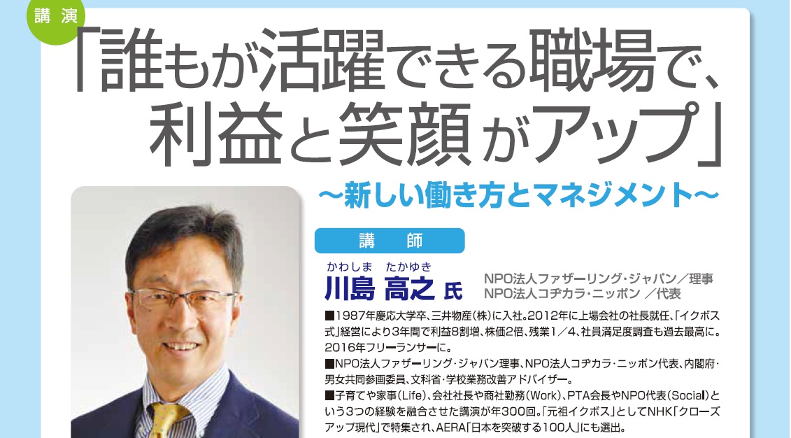 開催日時 平成30月8月2日(木)14:00~15:45開催場所 福島県男女共生センター 研修ホール(二本松市郭内1丁目196-1)参加者数 約270名 講演:「誰もが活躍できる職場で、利益と笑顔がアップ~新しい働き方と […]