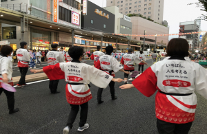 福島支社は、2019(令和3)年に「郡山市男女共同参画推進 事業者表彰」を受けました。その後、福島県主催の「女性管理職・リーダー塾」に福島支社の女性7名が参加したことで、「こんな取り組みをしたい」という具体的な提案が上がってくるようになりました。内勤者向けのモチベーションアップとタイムマネジメントに関する社内研修、「イクボス宣言」などは、女性従業員からのボトムアップで実現したものです。猪苗代湖や海岸の環境保全、うねめ祭り(右写真)といった地域活動への参加もこの福島に長く住んでいる女性の参加意識から実現していると思います。