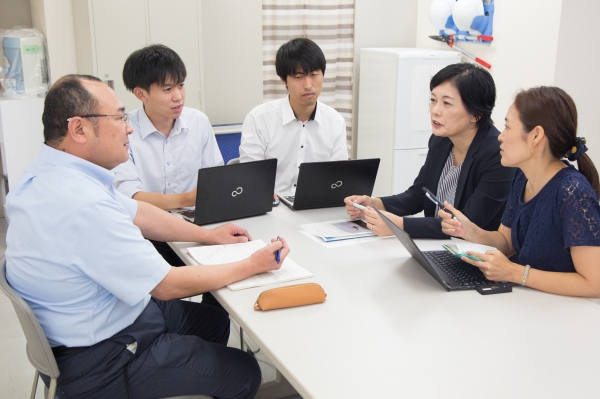 昨年、育休を取得した社員は、女性は7人で100%。男性はお子さんが生まれた9人のうち7人が取得しました。このような内容が評価され、厚生労働大臣から次世代育成支援対策推進法に基づく「基準適合一般事業主」の認定を受け、特例認定「プラチナくるみん」を取得することができました。今年も女性の育休取得率は3人中3人で100%。男性は4人中3人が取得しています。男性は、短い人で1週間、長い人では半年間の育休を取得しました。