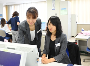 - 「お客様や保険代理店から『ありがとう』と声をかけられることが、なによりも仕事のやりがいになっている」と話す。「半日休暇」や「勤務時間自由選択制度(マイセレクト)」等をうまく組み合せながら、仕事と子育てのバランスをとっている。