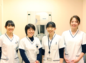 当財団では、女性の技師のみでマンモグラフィ検査や乳腺エコー検査を行っています。乳房検査には、恥ずかしさや検査に対する不安がつきものです。私たちは、患者さんの気持ちに寄り添いながら、一つひとつの動作の「声かけ」を大事にして検査するように心がけています。