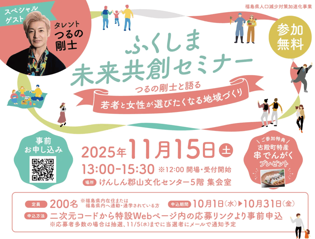 ふくしま未来共創セミナー~つるの剛士と語る😊若者と女性が選びたくなる地域づくり~【福島県(県中地方振興局)】
